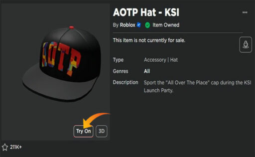 그러면 해당 항목의 프로필이 열립니다. 프로필에서 “시도” 옵션을 클릭하세요. 완료되면 돌아가서 아이템이 장착되어 있는지 확인하세요.