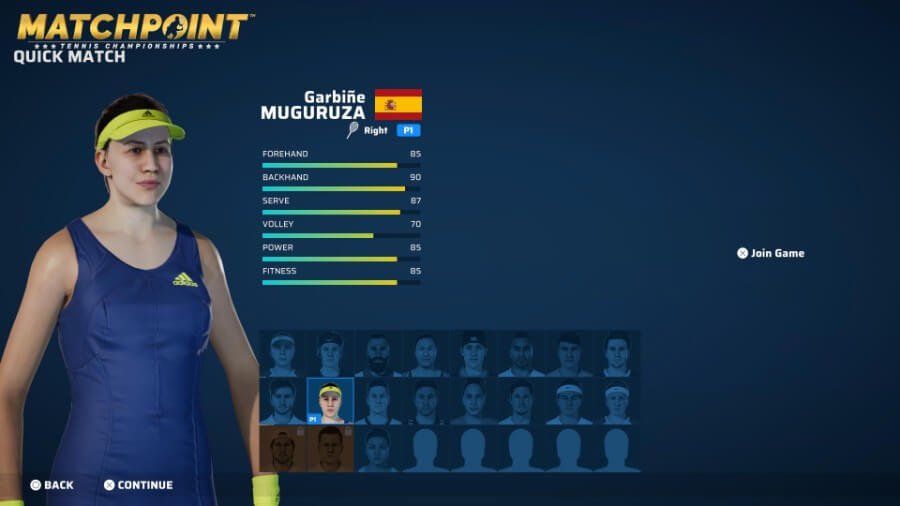 매치포인트 테니스 챔피언십: 여성 참가자 전체 목록