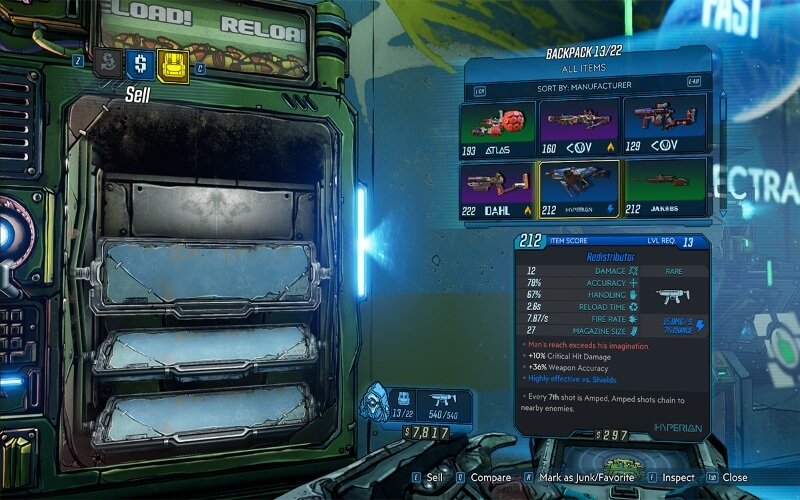 보더랜드 3에는 8가지 유형의 아이템을 가지고 다닐 수 있습니다. 16개의 인벤토리 슬롯으로 시작하기 때문에 스토리지가 매우 빨리 채워집니다. 성역에 있는 마커스를 방문하여 재고 공간을 늘리기 위해 SDU(Storage Deck Upgrades) 구매. 각 SDU 유형에는 8개의 업그레이드가 있으며 각 레벨에 대한 가격 인상이 있습니다. 모든 슬롯을 잠금 해제하면 인벤토리 관리가 덜 지루해 지지만 사용 가능한 전리품의 양은 무한합니다.