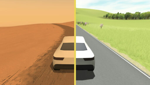 게임을 처음 시작하면 간단한 조작법이 간략하게 소개됩니다. 자동차를 직접 운전하거나 자동 조종 장치를 시작할 수 있습니다. 몇 대의 클래식 카메라를 교체할 수 있지만 운전 환경도 바꿀 수 있습니다. 그리고 이것이 흥미로워지는 곳입니다. 미리 선택된 사전 설정에서 선택하지 않으면 풍경을 직접 실험해 볼 수 있습니다.