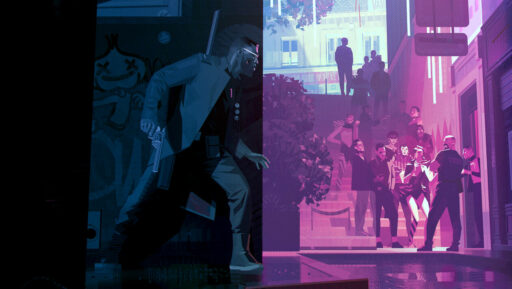 작품은 예술가 Sergej Kolesov와 Jean-Luc Monnet의 작품입니다. 제공된 이 세 가지 이미지에서 많은 것을 읽을 수 있다고 말할 수는 없지만 여전히 흥미로운 예이며 적어도 분위기를 유쾌하게 만들어줍니다. 첫 번째 장면에서는 블레이드가 옥상에서 파리의 거리를 내려다보는 모습을 볼 수 있는데, 불타고 있는 자동차들이 보여주듯이 그다지 안전해 보이지는 않습니다. 그 뒤에 있는 그림자 속에서 우리는 시체와 피도 볼 수 있습니다. 지평선 너머로 에펠탑, 연기, 호버크라프트 등이 보입니다. 그러면 어디에나 있는 삼각형은 매우 양식화된 박쥐를 나타낼 수 있습니다. 네온에 붙은 프랑스 표시 “Couvre-Feu Sortie Interdite”는 통금 시간을 알려줍니다. 이 장면은 잠재적으로 개발자들이 수직성을 다시 두려워하지 않고 우리가 높은 곳에서도 파리를 돌아다닐 수 있음을 나타낼 수 있습니다.