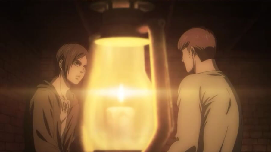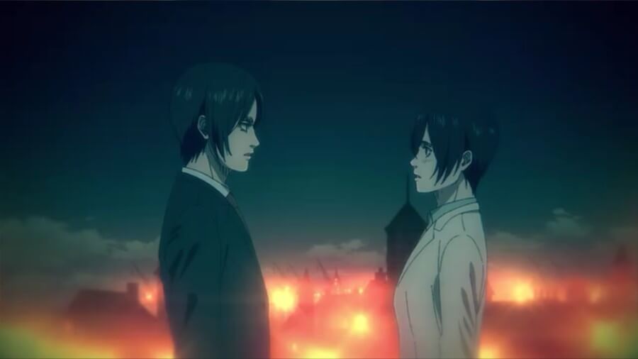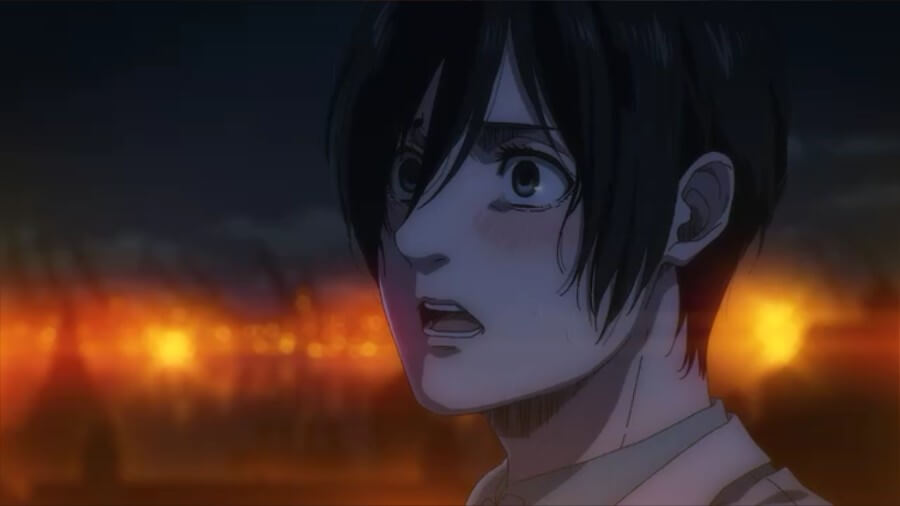 에렌의 질문에 놀란 미카사. (이미지 출처: MAPPA Co., Ltd.)