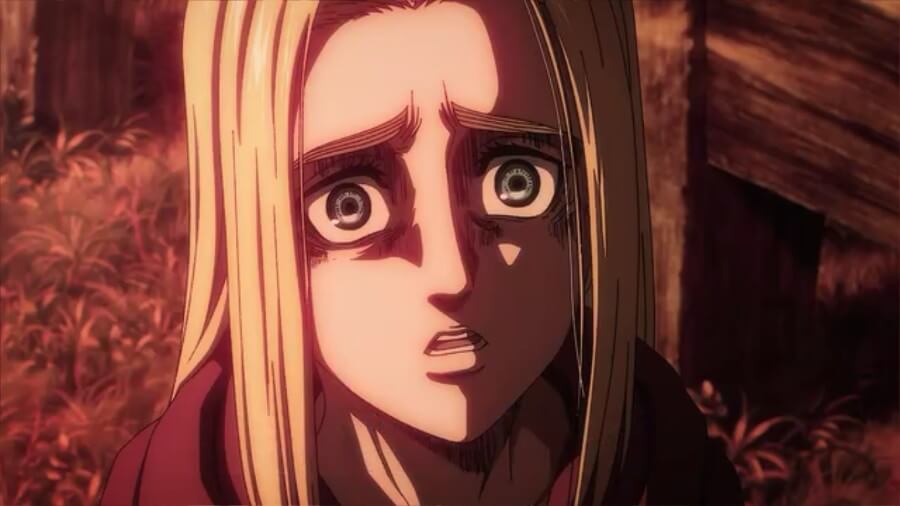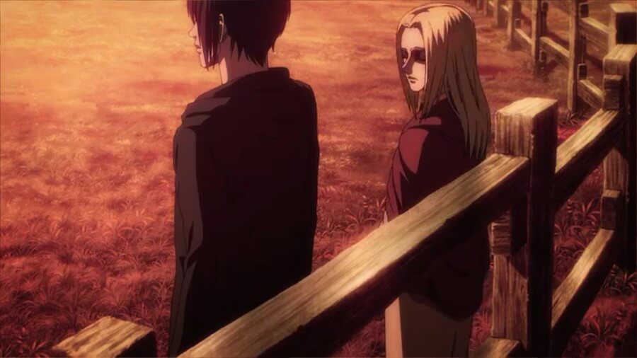 에렌에게 재검토를 촉구하는 히스토리아 (이미지 출처: MAPPA Co., Ltd.).