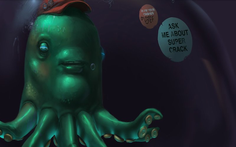 당신이 마약 딜러에게서 얻는 Super Fun Cool Drug Enthusiast Token은 문어가 운영하는 마약 자판기를 위한 것입니다. Octopus는 그녀가 바다에서 끌려나와 무급 소매업을 하게 되었다고 말합니다. 그녀는 매우 직설적이며 필터가 없지만 사물을 있는 그대로 받아들이는 것 같습니다. Octopus는 마약 딜러를 좋아하지 않으며 게임을 이기고 토큰을 획득하는 데 매우 중요한 팁을 제공합니다. 마약 딜러의 토큰을 사용하여 Octopus에서 우주 먼지를 구입하십시오.