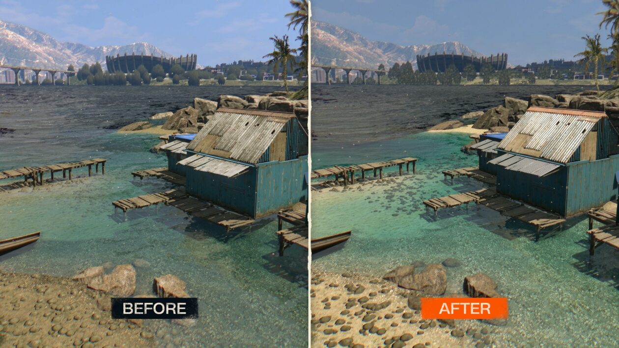retouchda 업데이트는 여러 가지 방법으로 게임의 시청각 측면을 개선했습니다. 업데이트 후, 죽어가는 조명의 해상도 텍스처, 초 특성 설정, 가시성 및 보트 수준이 높거나 상향 스카이 박스 및 구름이 있습니다. 중요하게도, 게임은 내부 엔진으로 만들어졌으며 오늘날에도 일한 사람들이 여전히 있다는 것입니다. 수년에 걸쳐, 그들은 새로운 기술의 가능성을 배우고 발견 한 후 일부 오래된 재료에 대한 새로 경험이 풍부한 경험을 시도했습니다. 그리고 개발자들은 전체 게임에서 작동 할 수 있음을 깨달았습니다. 예를 들어, 더 많은 사람들이 프로젝트로 옮겼습니다. 예를 들어, 그것은 질감과 외관을 확대하기 위해 노력하기 시작했으며, 이는 많은 수동 작업을 의미했으며 나중에 조명에 집중해야 할 필요성이 훨씬 더 현실적으로 보입니다. 그림자 덕분에 그들은 바닥,지면 및 콘크리트 표면의 더 눈에 띄는 깊이를 얻었습니다.