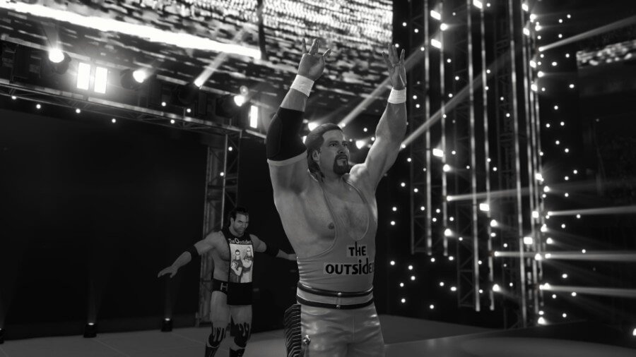 3월 14일 Scott Hall의 사망 이후 큰 타격을 받은 The Outsiders’의 입구는 Hall의 존재와 매너 때문에 실제로 훨씬 더 시원합니다. 아웃사이더의 입구는 nWo 버전을 사용하든 사용하지 않든 동일하다는 점에 유의하는 것도 중요합니다. 유일한 차이점은 nWo 버전에서는 흑백 화면이 표시된다는 것입니다.