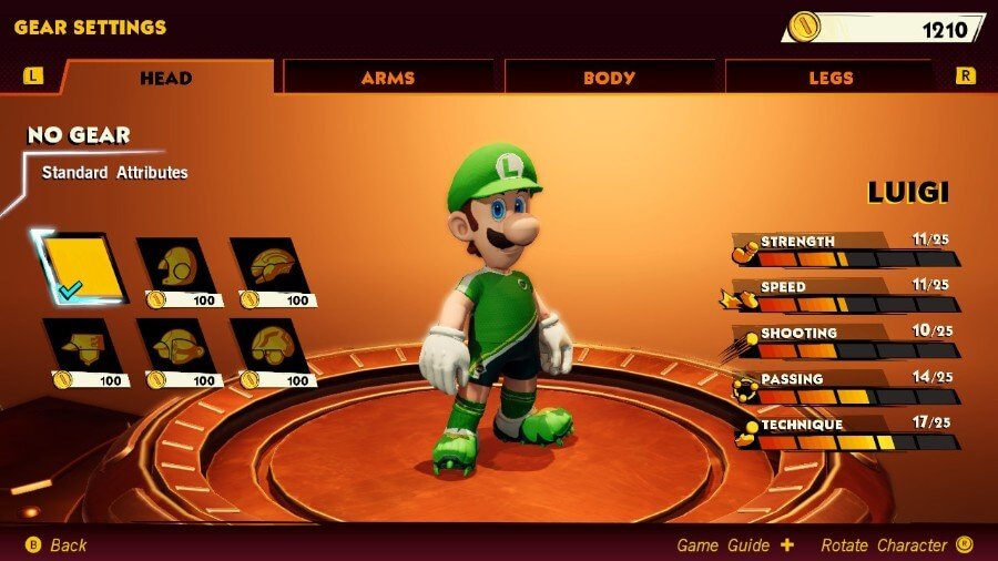 Luigi의 등급이 분산되는 방식 때문에 속도와 힘을 높이는 장비를 목표로 삼는 것이 가장 좋습니다. 그러면 그가 드리블과 패스를 최대한 활용하여 태클을 피하거나 힘이 약한 사람들을 막을 수 있습니다. 느리지만 강한 캐릭터가 태클을 하는 바람에 찬스 직전에 만회가 되어서 안타까움을 자아낸다.