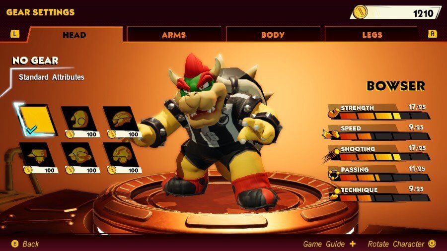 힘과 사격에서 그의 높은 평가 때문에 특히 Bowser의 기술을 향상시키는 장비를 목표로 삼는 것이 가장 좋습니다. 이것은 그의 높은 슈팅 능력과 하이퍼 스트라이크 샷을 최대한 활용하는 데 도움이 될 것입니다.