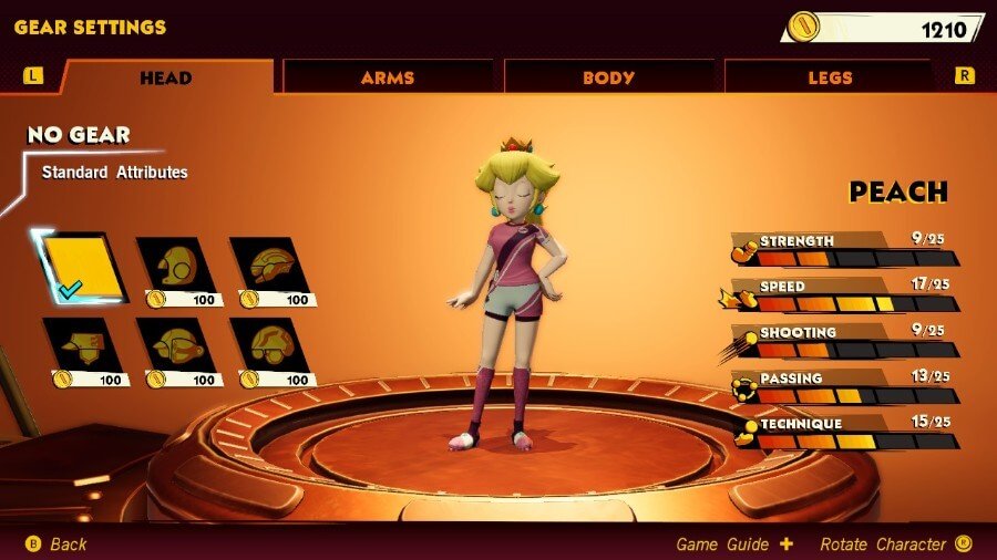 Peach의 슈팅 등급을 높이는 장비를 목표로 하여 Peach의 높은 기술을 향상시키는 것이 가장 좋습니다. 그녀의 스피드와 테크닉으로 그녀는 기회를 노리는 수비수를 피하고 피치 주위를 드리블하는 1인 여성 쇼가 될 수 있습니다.