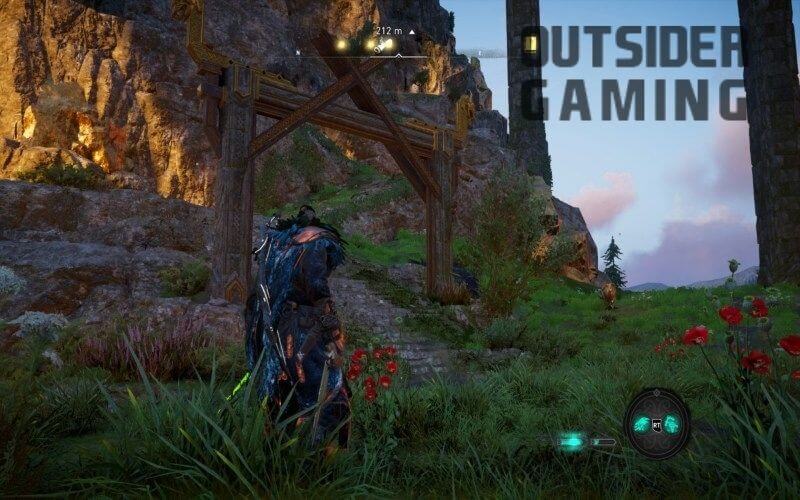 산 아래, 다리 아래 근처에는 본궁으로 이어지는 길이 있습니다. 또는 까마귀의 힘이 있는 경우 정상으로 올라갈 수 있습니다. 이 지역은 경비원으로 가득 차 있기 때문에 목표를 향해 은신하거나 전면전을 선택할 수 있습니다.