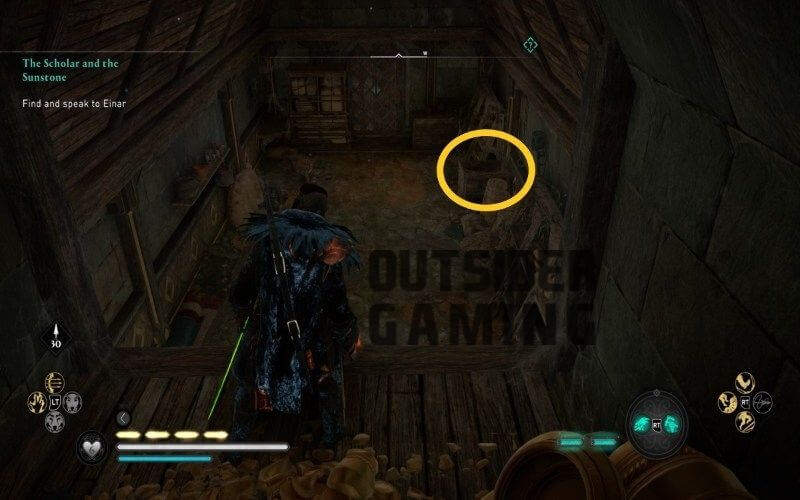 안으로 들어가면 방의 오른쪽에 있는 나무 상자에 Sunstone이 있습니다. 집에는 당신이 뛰어내릴 때 당신을 공격할 쥐가 들끓고 있습니다. 쥐를 공격하면 쥐가 문 옆 배수로로 도망가게 됩니다. 쥐를 가두는 배수구 위로 문을 막고 있는 장벽을 이동합니다. Sunstone을 가지고 Hvergelmir Mylna의 서쪽에 있는 Einar를 만나십시오.