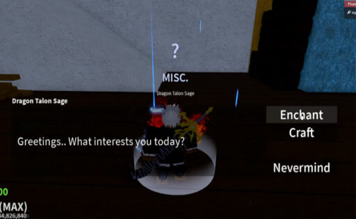 Blox Fruits에서 아이템을 제작하거나 마법을 부여하려면 Dragon Talon Sage라는 NPC에게 가서 대화해야 합니다. 그렇게 하면 두 가지 옵션이 표시됩니다. 마법부여와 공예.