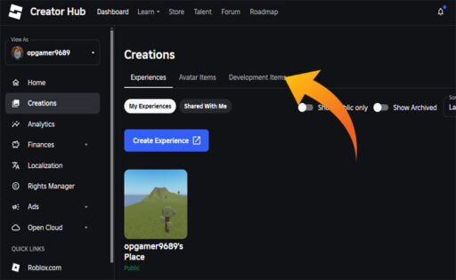 - 그런 다음 선택하십시오 “개발 항목”.