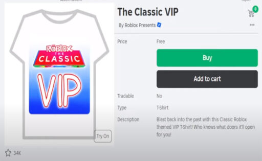 티셔츠를 얻으려면 Roblox Store로 가서 다음을 검색하세요. 클래식 VIP 티셔츠.