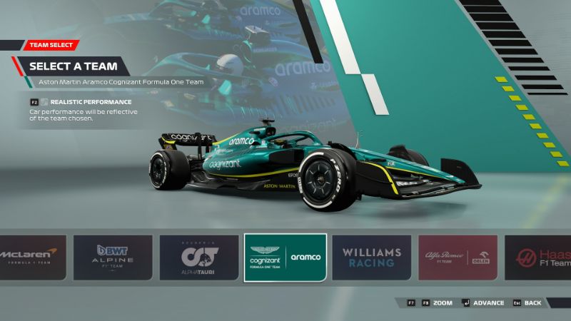 실생활에서 Aston Martin이 발전하고 있는 동안, 지금까지 게임에서 팀을 대표하는 것은 초기 시즌 투쟁에 대한 것입니다. AMR22는 현재 게임에서 가장 나쁜 자동차 중 하나이며 그리드에 오르려면 플레이어의 많은 인내가 필요합니다. 다운포스가 거의 없고 코너에서 보트처럼 핸들링하는 매우 끌리는 자동차입니다. Williams처럼 그리드를 올리는 것은 확실히 큰 도전입니다.