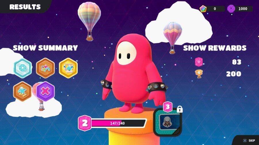 Fall Guys는 많은 유사한 게임과 마찬가지로 일일, 주간 및 “마라톤” 챌린지를 완료해야 합니다. 여기에는 “X번의 게임 플레이”, “X번의 배치” 등과 같이 흔히 볼 수 있는 것들이 포함됩니다. 각 챌린지는 5가지 범주로 나뉩니다. Common(하늘색), Uncommon(진한 파란색), Rare(녹색), Epic(보라색), Legendary(주황색), 항목과 유사합니다. 많은 도전 과제는 완료하기가 매우 간단하고 시간이 필요하므로 특히 경험 초기에 목표를 잡으십시오.
