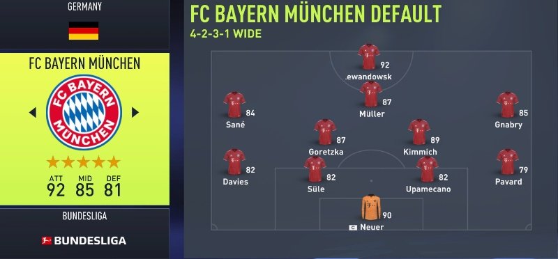 최고의 선수: 로버트 레반도프스키(OVR 92), 마누엘 노이어(OVR 90), 조슈아 키미히(OVR 89)