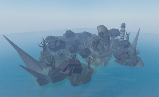 이제 똑바로 가면 섬의 가장자리에서 뾰족한 돌이 나오는 것을 볼 수 있습니다.