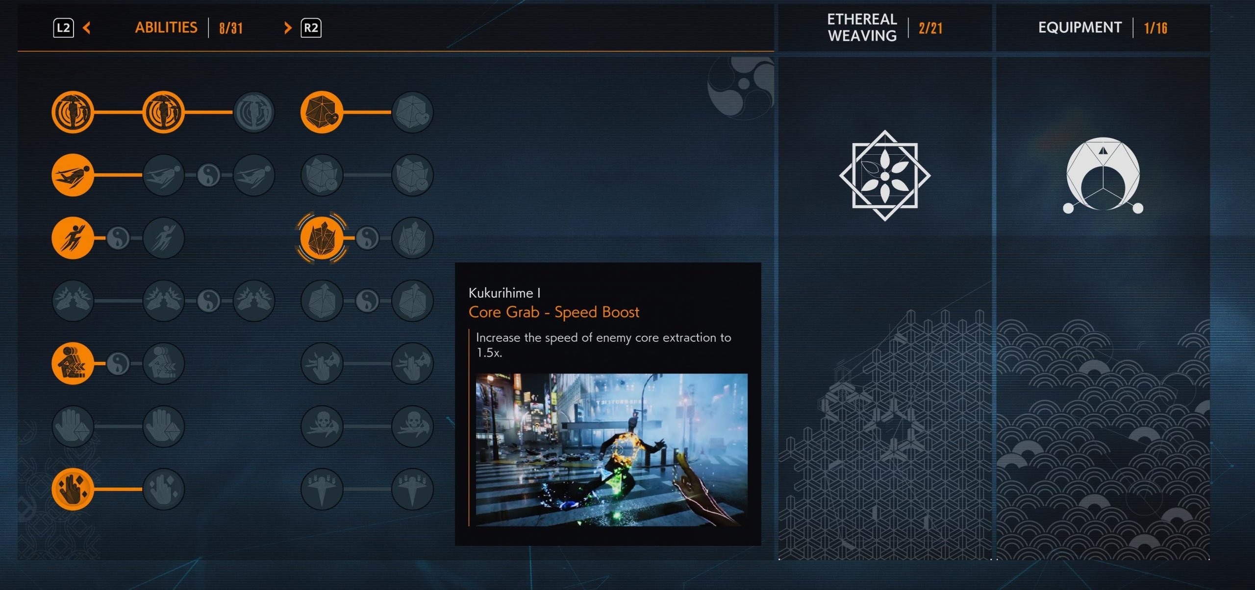 1인칭 공포 게임 Ghostwire: Tokyo는 영혼에 의해 죽음의 위기에서 구한 형이 되어 신비한 Hannya로부터 여동생을 구하는 임무를 수행합니다. 다른 세상의 적인 “방문자”와의 전투를 돕기 위해 이 게임은 세 가지 범주로 분류된 다양한 기술을 제공합니다. 능력, 천상의 직조 및 장비.