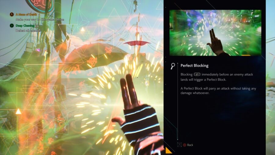 퍼펙트 블로킹은 다음과 같은 경우 발생합니다. 공격이 막 착지하려고 할 때 가드(L1)를 치십시오.. 이것은 발사체 공격에도 적용됩니다. 퍼펙트 블로킹은 적에게 해를 입히지 않지만, 비틀거리며 공격할 수 있도록 개방합니다. 중요한 것은 Perfect Block으로 인해 피해를 입지 않는다는 것입니다!