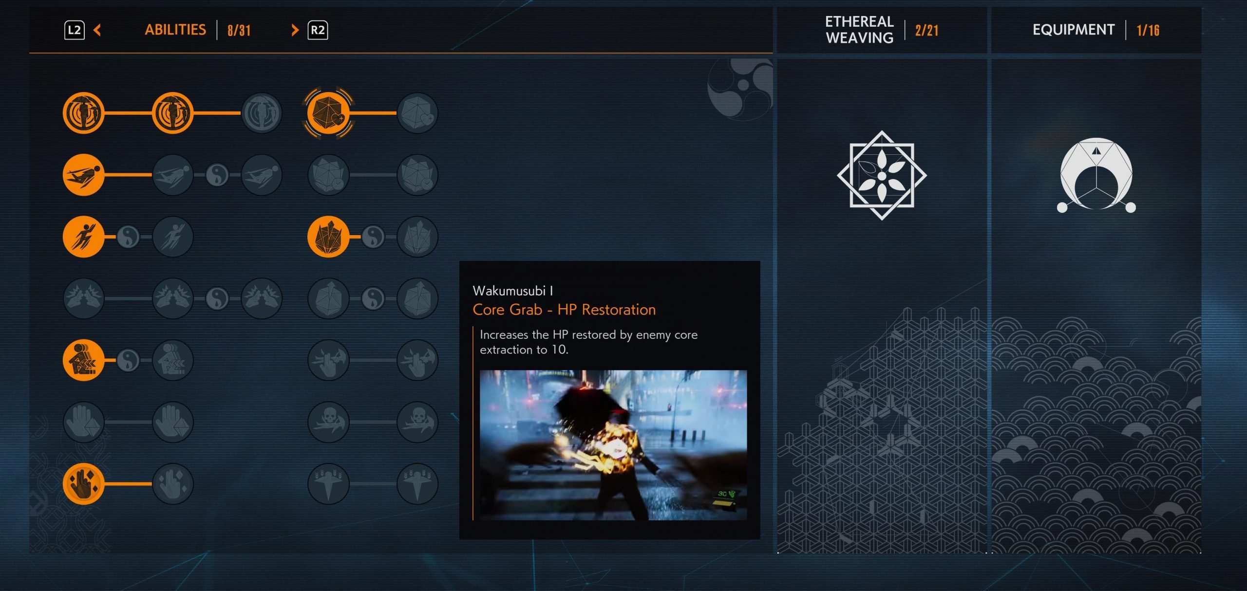 코어 잡기 기술 삼두의 마지막 조각인 Wakumusubi는 성공적으로 코어를 획득할 때마다 일부 건강을 회복합니다. Fudo, Kukirihime 및 Wakumusubi의 콤보는 당신이 Ghostwire를 플레이하면서 빠르고 치명적인 영혼의 사신(말 그대로)이 되게 할 것입니다.