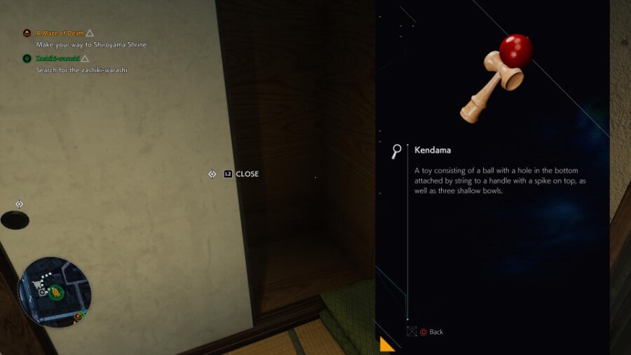 거실에서 왼쪽으로 향하고 다른 데이터베이스 항목이 있는 복도 끝까지 가십시오. 여기에서 메인 룸으로 들어가서 먼 옷장을 엽니 다. 유물을 찾기 위해 켄다마. 그러나 주변을 둘러보면 접근할 수 있는 문이나 창문이 없습니다.