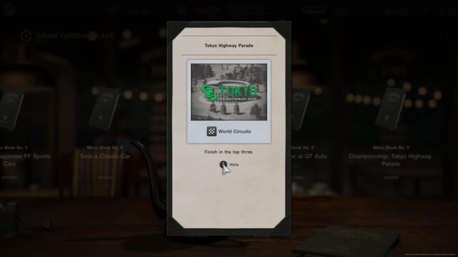 Menu Book 9를 수락하고 손에 들고 World Circuits로 이동하여 선택하십시오. 화면 하단의 도쿄 하이웨이 퍼레이드 챔피언십. 여기에서 다음을 수행해야 합니다. 두 레이스에서 상위 3위 안에 들다 Tokyo Expressway Central에서 시계 방향 및 시계 반대 방향.