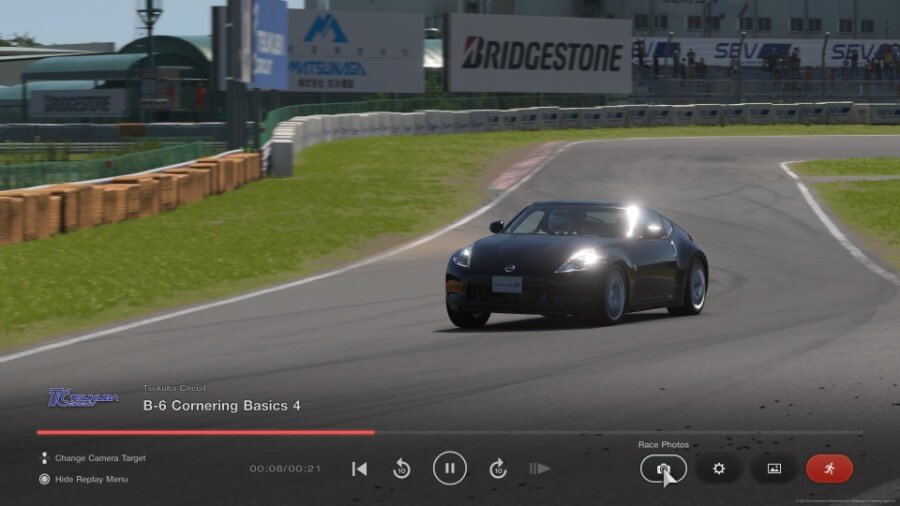 레이스가 끝나면 레이스 다시보기를 클릭합니다. 거기에서 Circle을 눌러 위의 하단에 있는 사진 메뉴를 불러옵니다. 사진의 라이센스 행사에서 레이스가 진행됨에 따라 많은 옵션이 제공됩니다.