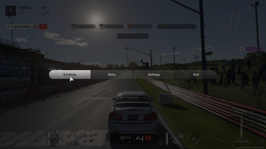 레이스 중 공유 버튼을 누르면 게임이 자동으로 일시 중지 메뉴로 들어갑니다. 이것은 결국 운전 중에 휴대전화를 사용하지 않는 것이 가장 좋으며 여기에서 사진을 찍는 것이 본질적으로 그렇게 작용하기 때문입니다. 일시 중지 메뉴는 기본적으로 전체 이미지를 차단하고 경주 사진을 공유하는 것을 방지합니다. 불행히도 이것은 다음까지 기다려야 함을 의미합니다. 사진을 찍기 위해 경주를 마치고.