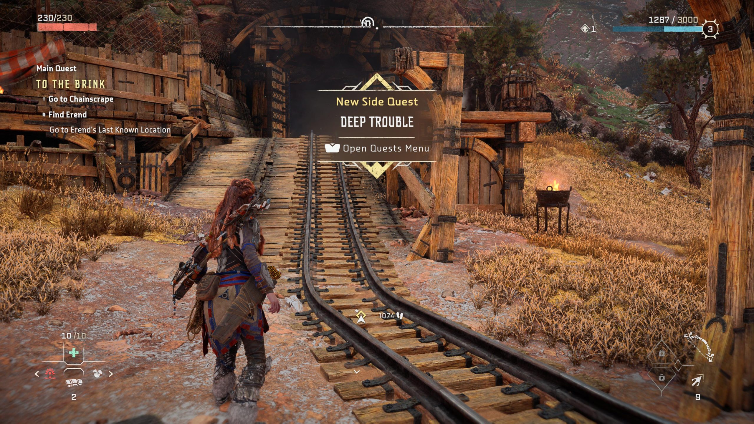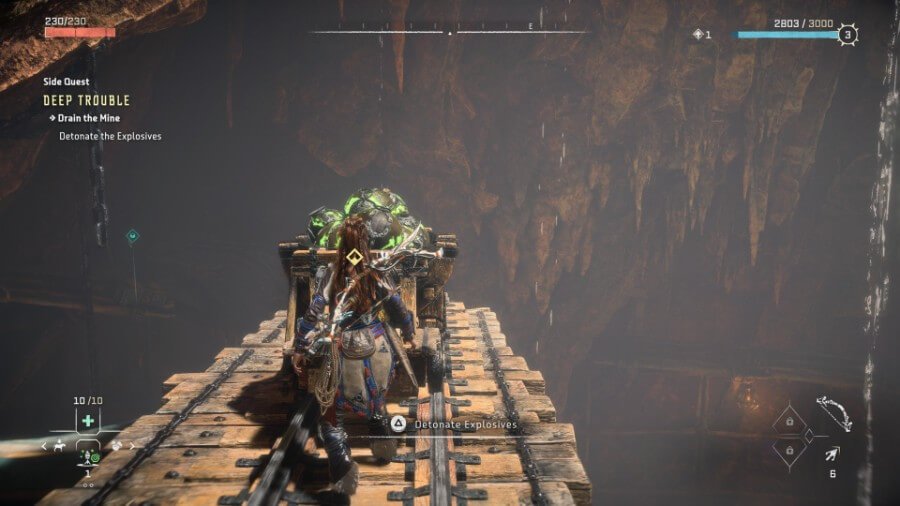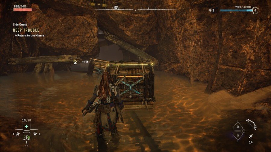 게임 초반에 Aloy가 Forbidden West로 설정하면 One Side Quest는 다음과 같습니다. 딥 트러블. 잘못된 폭발로 홍수가 발생한 후 몇 명의 광부가 갇혔습니다. 당신은 광산에서 그들을 구출하는 임무를 받았습니다.