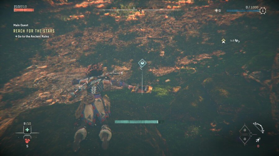 활로 은신 처치를 할 수 있지만 활을 업그레이드하고 사용하는 화살 유형을 늘릴 수 있을 때까지 게임 초반에 창과 R1을 사용하면 훨씬 간단합니다. 덤불 속에서도 이미 기계를 명중한 후 그림과 사격을 하는 동안 더 쉽게 발견되기 때문에 인내심을 갖고 적에게 몰래 다가가 창으로 제압하는 것이 좋습니다.
