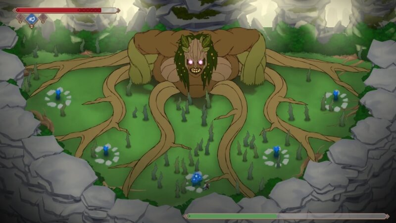 Jotun에는 매우 화려한 보스전이 있습니다. 첫 번째 보스는 케이크 조각이지만 Jera Flower는 첫 번째 어려운 도전이 될 것입니다. 제라의 약점은 위 그래서 거기에 공격을 집중하십시오. 공격의 첫 번째 단계에서 그녀는 자신의 주위에 땅을 두드리므로 공격을 피하기 위해 그림자를 사용합니다. Jera에게서 25%의 피해를 입을 때마다 그녀의 배가 열려 꽃이 드러납니다. 충전된 강공격을 사용하여 피해를 극대화하세요.