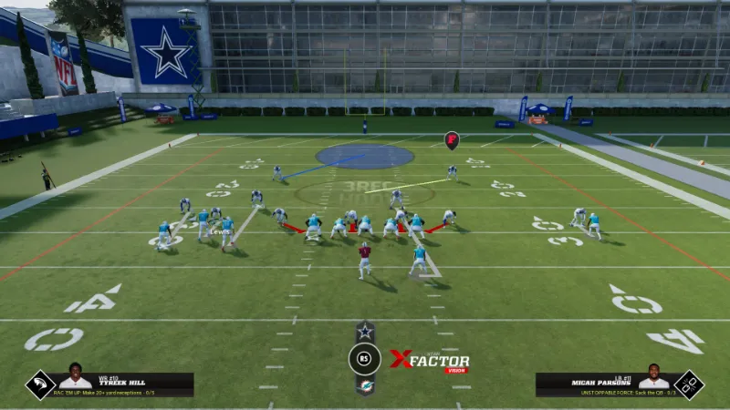 선택한 수비수를 사용하여 수동으로 리시버를 누르면 게임 중에 상대방의 던지는 경향을 배울 수 있는 이점이 있으므로 더 많은 가로채기 기회와 넉다운으로 이어질 수 있습니다.