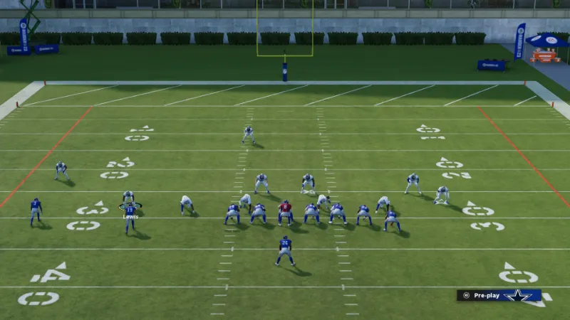 Madden에서 리시버를 수동으로 누르려면 제어하려는 수비수를 선택하고 선택한 리시버 바로 앞에 배치합니다. 볼이 스냅되면 왼쪽 스틱을 위로 잡고 X(PlayStation) 또는 A(Xbox)를 누릅니다. 수비수는 타이밍을 방해하기 위해 수신기의 엉덩이에 붙어 있습니다.