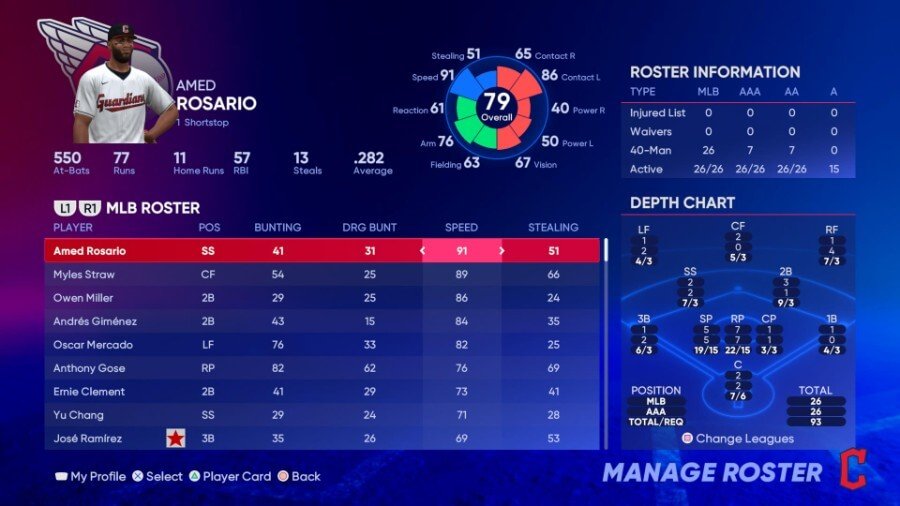 American League Central은 지난 몇 시즌 동안 야구에서 최악의 디비전으로 비난을 받았지만 상황이 바뀌고 있으며 MLB The Show 22에서 가장 빠른 두 팀을 보유하고 있습니다. 새로 지명된 Guardians는 최소 82 속도. Amed Rosario는 유격수 91개로 선두를 달리고 있습니다. 전 Mets의 유망주가 클리블랜드에서 홈을 찾은 것 같습니다. 그 뒤를 이어 팀과 연장 계약을 맺은 지 얼마 안 된 마일스 스트로(89)가 중앙에, 오웬 밀러(86)가 2루수로, 안드레스 지메네스(84)가 2루, 3루, 쇼트에서 메울 수 있다. 이것은 클리블랜드에게 가장 중요한 위치인 중앙에서 신속한 수비를 제공하며 속도에 따라 범위를 확장할 수 있습니다. Oscar Mercado(82)는 코너 외야에서 약간의 속도를 추가합니다.