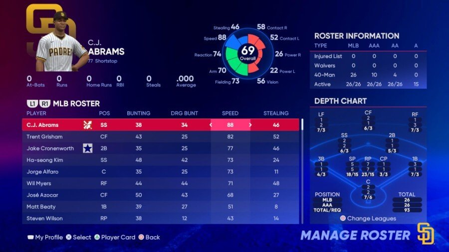 샌디에고는 한 명의 핵심 선수를 추가하여 순위를 올릴 것입니다. 슈퍼스타이자 MLB The Show 21 표지 선수 Fernando Tatis, Jr.(스피드 90). 쇼에서 부상당한 선수를 AAA에서 AAA로 이동할 수 있음을 기억하십시오. 그들의 메이저 리그 클럽.