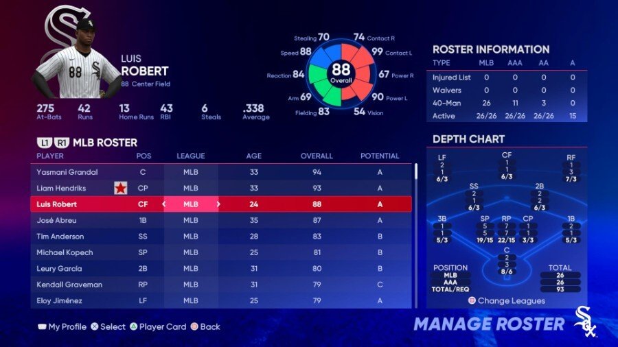 주목할만한 타자: 야스마니 그란달(94 OVR), 루이스 로베르(88 OVR0), 호세 아브뢰(87 OVR)