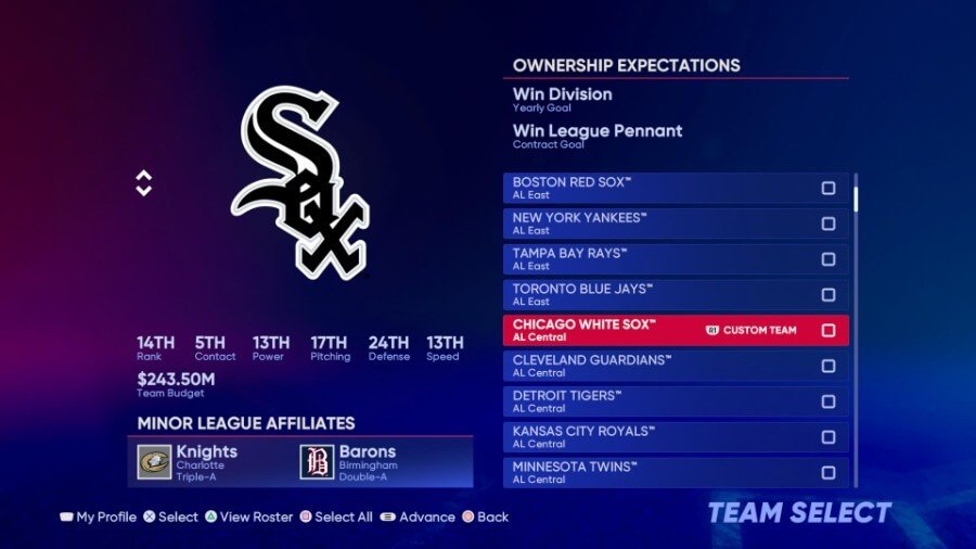 많은 전문가들이 2022년 월드 시리즈에 진출할 것으로 예상하는 팀인 시카고는 무엇보다 라인업을 통해 이러한 높이에 도달하기를 희망합니다. Yasmani Grandal(94 OVR)은 최소한 수비적으로는 야구 최고의 포수일 수 있지만 높은 파워 등급 덕분에 모든 스윙에서 홈런을 치는 것을 추구합니다. Luis Robert(88 OVR)는 우투수를 잘 상대하고 좌완을 상대하며 최고의 라인업 속도를 자랑합니다. 2020 ALMVP José Abreu는 힘을 약간 선호하는 균형 잡힌 타자이고 Tim Anderson(83 OVR)은 접촉 타자에 가깝습니다. 그들은 Leury Garcia(80 OVR) 및 Eloy Jiménez(79 OVR)와 같은 선수가 지원을 제공하는 무시무시한 4인조를 선보입니다.