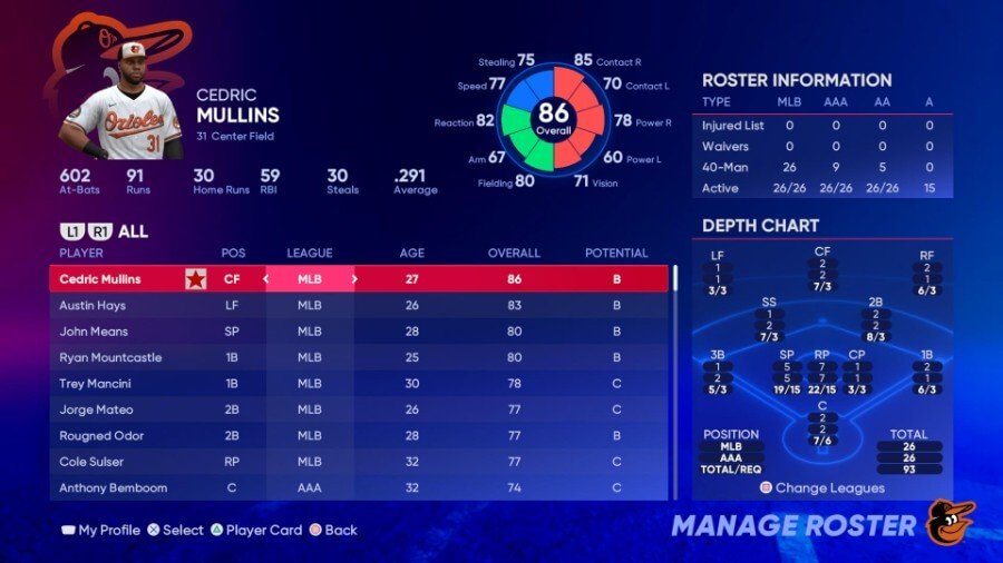 볼티모어에는 프리미엄 수비 포지션인 올스타 Cedric Mullins 매닝 센터 필드가 있습니다. Mullins는 Austin Hays, Ryan Mountcastle(80 OVR) 및 Trey “Boom Boom” Mancini(78 OVR)를 포함한 라인업에 몇 명의 파워 배트와 합류했습니다. Jorge Mateo(77 OVR)는 게임에서 가장 빠른 선수 중 한 명입니다. 그러나 그들의 라인업에는 많은 스윙 앤 미스(swing-and-miss)가 있습니다.