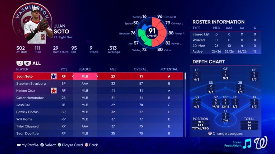 최고의 선수: 후안 소토(91 OVR), 스테판 스트라스부르(87 OVR)