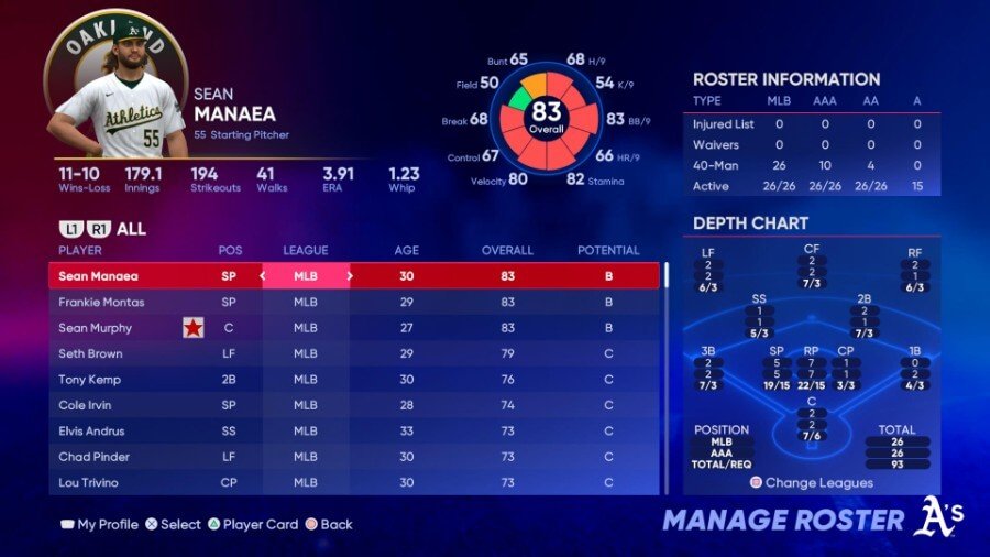 최고의 선수: Frankie Montas(83 OVR), Sean Murphy(83 OVR)