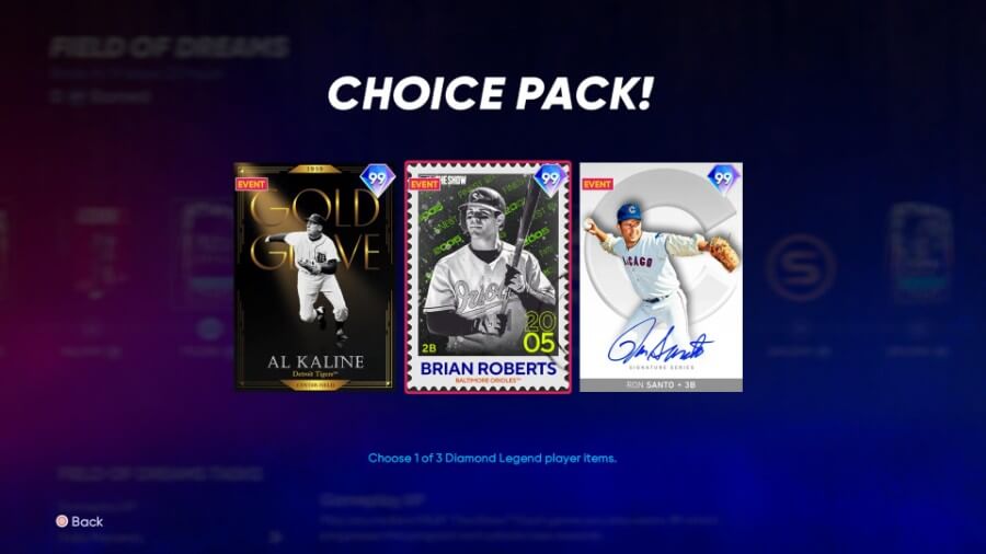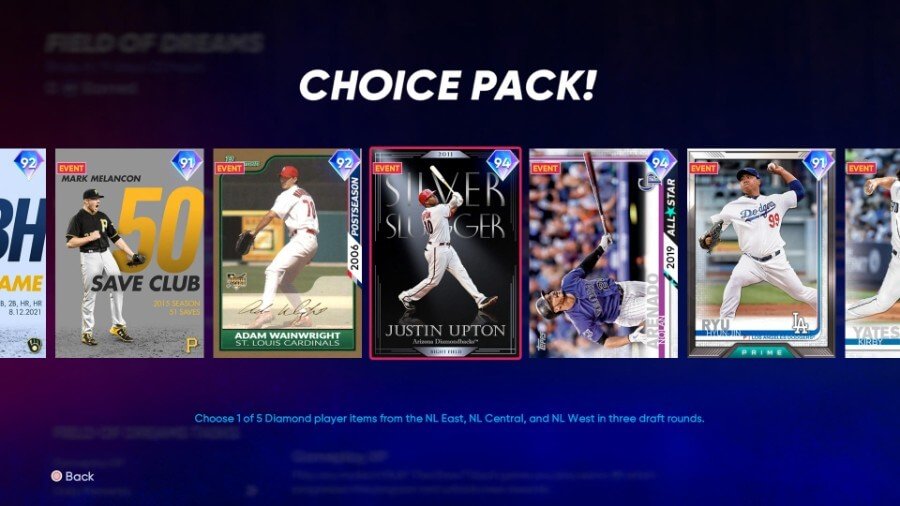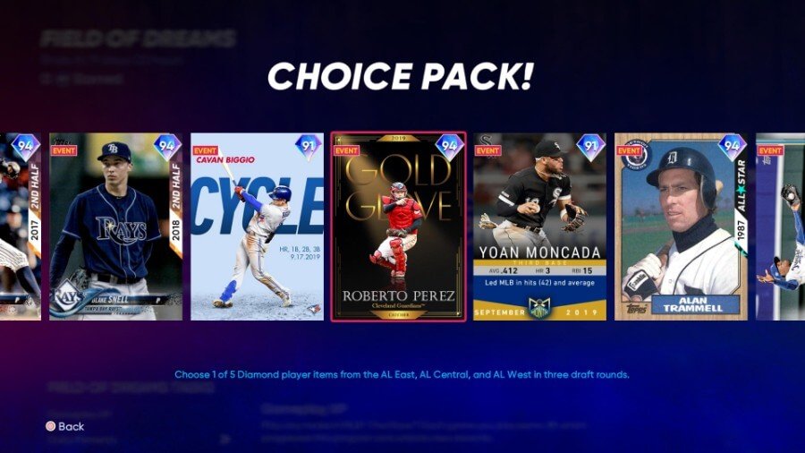8월 11일 Field of Dreams 게임 직후에 San Diego Studios에서 Field of Dreams 팩을 매장에 드롭할 수 있습니다. 이전 프로그램에서 홈런 더비 및 올스타 게임 관련 팩을 출시했습니다.