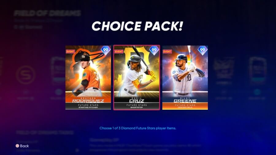 Future Stars 팩에서 선택한 항목은 다음과 같습니다. 선발 투수 볼티모어의 그레이슨 로드리게스, 피츠버그의 유격수 오닐 크루즈, 디트로이트의 중견수 라일리 그린. 크루즈와 그린은 각각 파이어리츠와 타이거스로 부름을 받았지만 로드리게스가 부상을 입고 2022년 오리올스에서 뛰지 못할 것 같다.