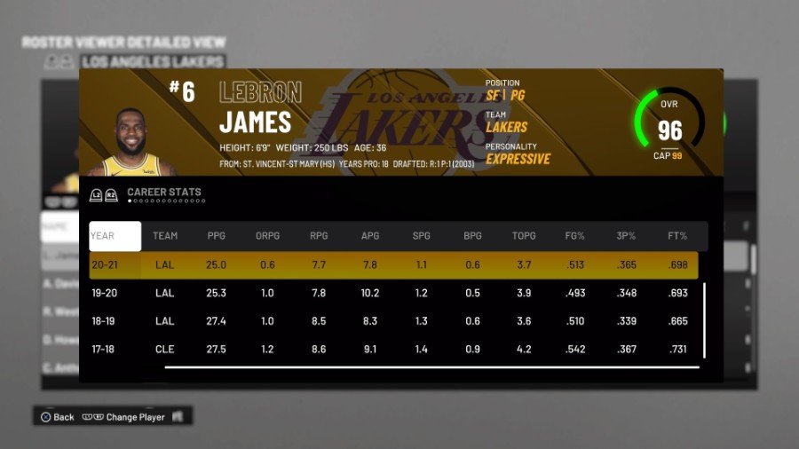 2K21에서 전체 97점이었던 James는 이제 3,295개의 속성 점수와 65개의 배지로 96점이 되었습니다. 그의 두 번째 포지션은 포인트 가드이며, 이는 멈출 수 없는 슬래싱과 플레이메이킹의 최고의 조합 중 하나를 소유한 개인으로서 그의 사례를 공고히 합니다. 그의 97개의 레이업과 90개의 드라이빙 덩크, 94개의 패스 IQ 및 90개의 패스 정확도는 James의 경우입니다.