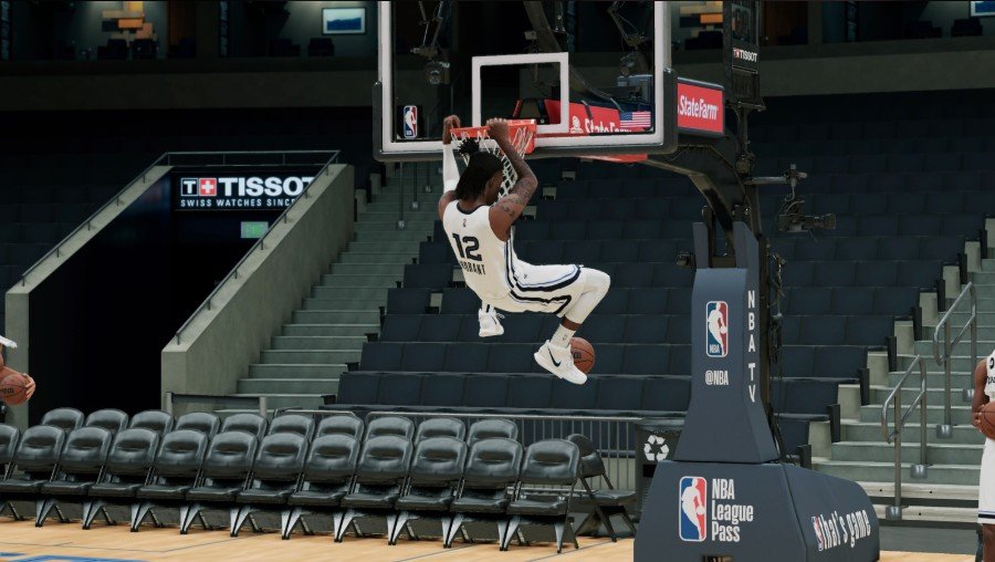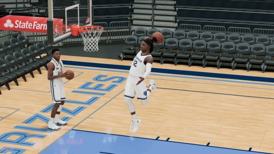 공격적인 덩크는 R2 또는 RT 트리거를 누른 상태에서 전력질주하는 동안 오른쪽 스틱을 아무 방향으로나 튕겨서 수행할 수 있습니다. 공격적인 덩크는 Ja Morant, Vince Carter 및 Zion Williamson과 같은 엘리트 덩크 패키지를 보유한 모든 플레이어가 사용할 수 있습니다.