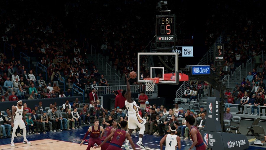 레이업을 하는 것보다 공을 덩크할 확률을 높이려면 오른쪽 스틱을 사용하여 움직임을 실행해야 합니다. 이렇게 하면 컴퓨터에서 플레이어가 레이업을 하지 못하게 됩니다.