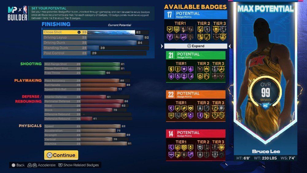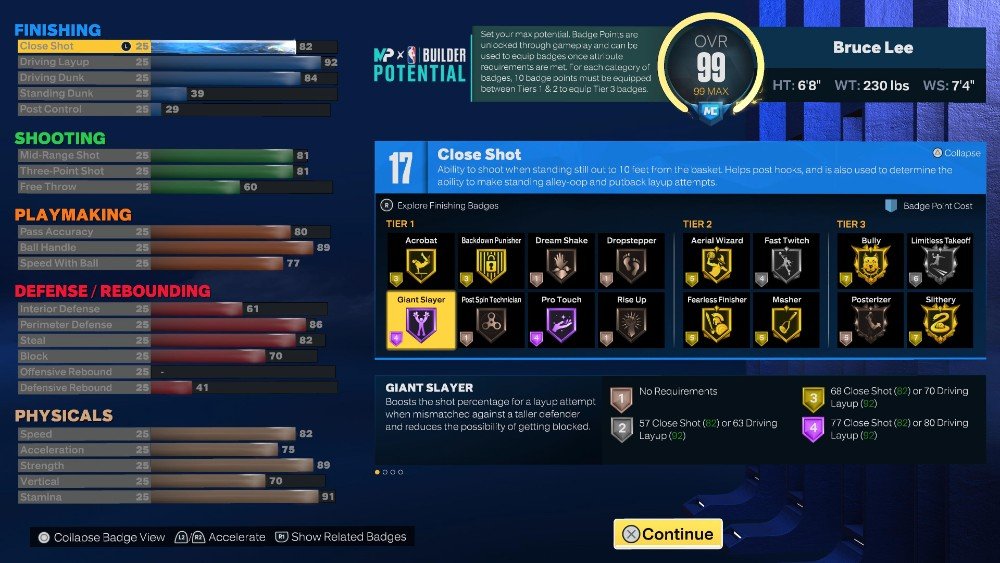 마지막으로, Bully 배지와 함께 89 Strength를 사용하면 플레이어가 다른 플레이어보다 유리에서 마무리할 수 있습니다. 이러한 차이점은 플레이어를 엘리트 피니셔로 끌어올릴 것입니다. 82 스피드와 91 스태미나는 포인트 포워드의 필수 속성입니다. 왜냐하면 언급했듯이 플레이어는 가드와 같은 기술을 가지고 있어야 하기 때문입니다.