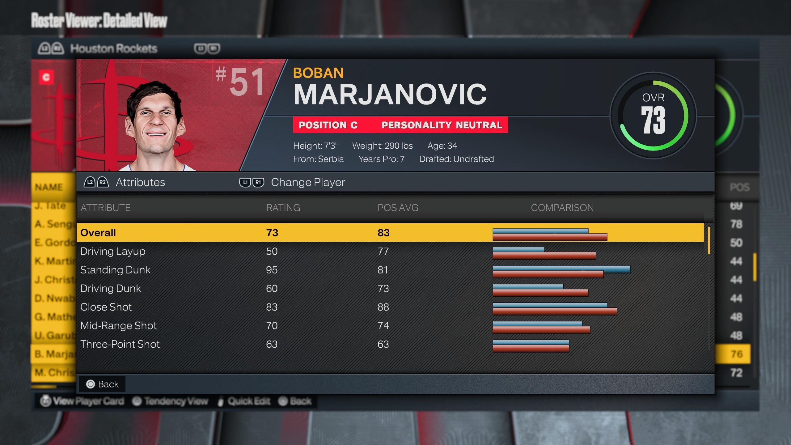 Boban Marjanović는 NBA 2K23에서 사용할 수 있는 공동 키가 가장 큰 선수입니다. 7’3” 세르비아인은 오프시즌 동안 휴스턴 로키츠와 크리스 우드 계약의 일부로 트레이드되기 전에 댈러스에서 뛰었습니다.