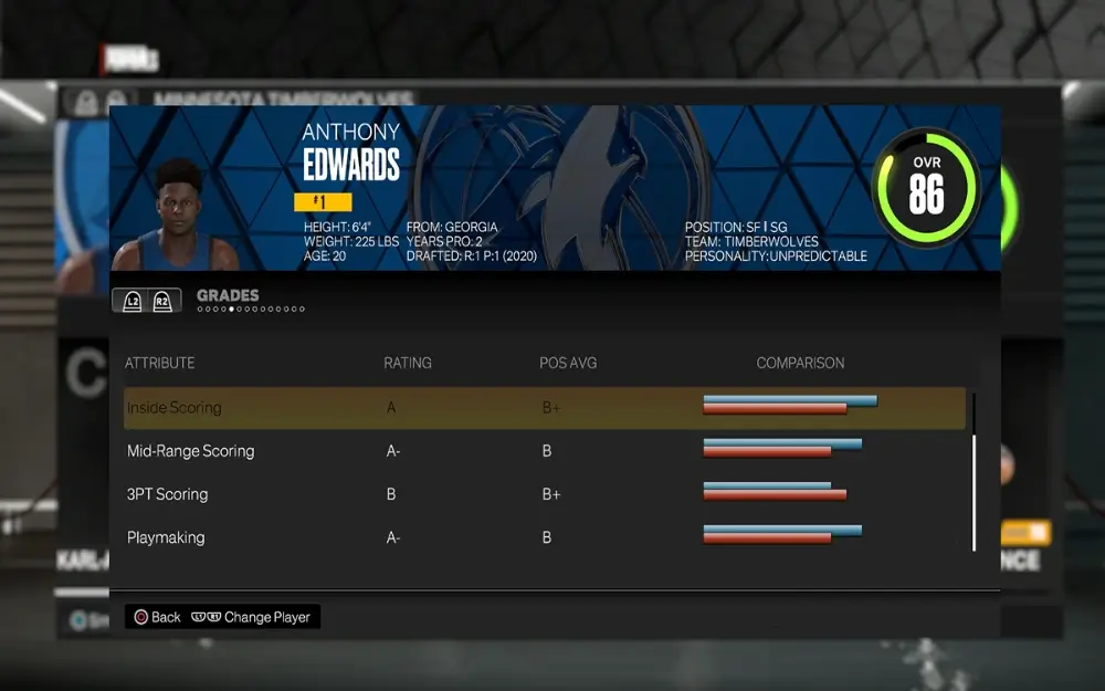 | 앤서니 에드워즈 | 95 | 6’4” | 86 | SF/SG | 미네소타 팀버울브스 |