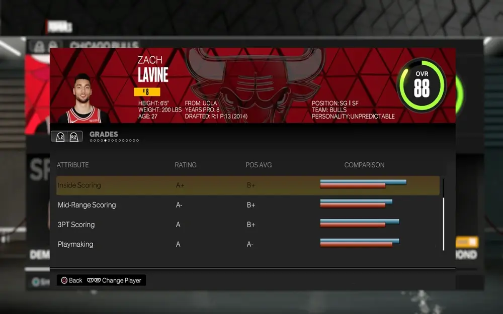 최고의 통계: 97 드라이빙 덩크, 90 허슬, 98 공격 일관성